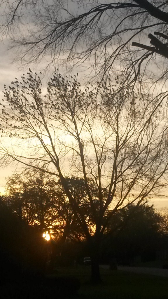 Robins….it all started with Robins one February day in Texas. It was unseasonably hot, over 80 degrees, and our air conditioner had stopped working, so I had opened the windows and doors to allow fresh air to cool down the stuffy house. I was going about my day when the chittering of birds outside caught my attention. We had been in our house for seven years and had never experienced such an event. I stepped onto the patio and looked to see hundreds of Robins in the trees surrounding our property and in our “avian high rise,” a 30 foot wall of viburnum that bordered our pool and was often a popular place for the local birds to hang out.